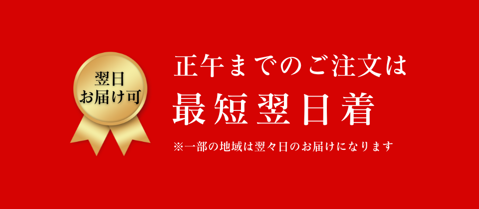 翌日配送対応地域 へは出荷の翌日にお届けし、その他の地域へは翌々日にお届け致します。
